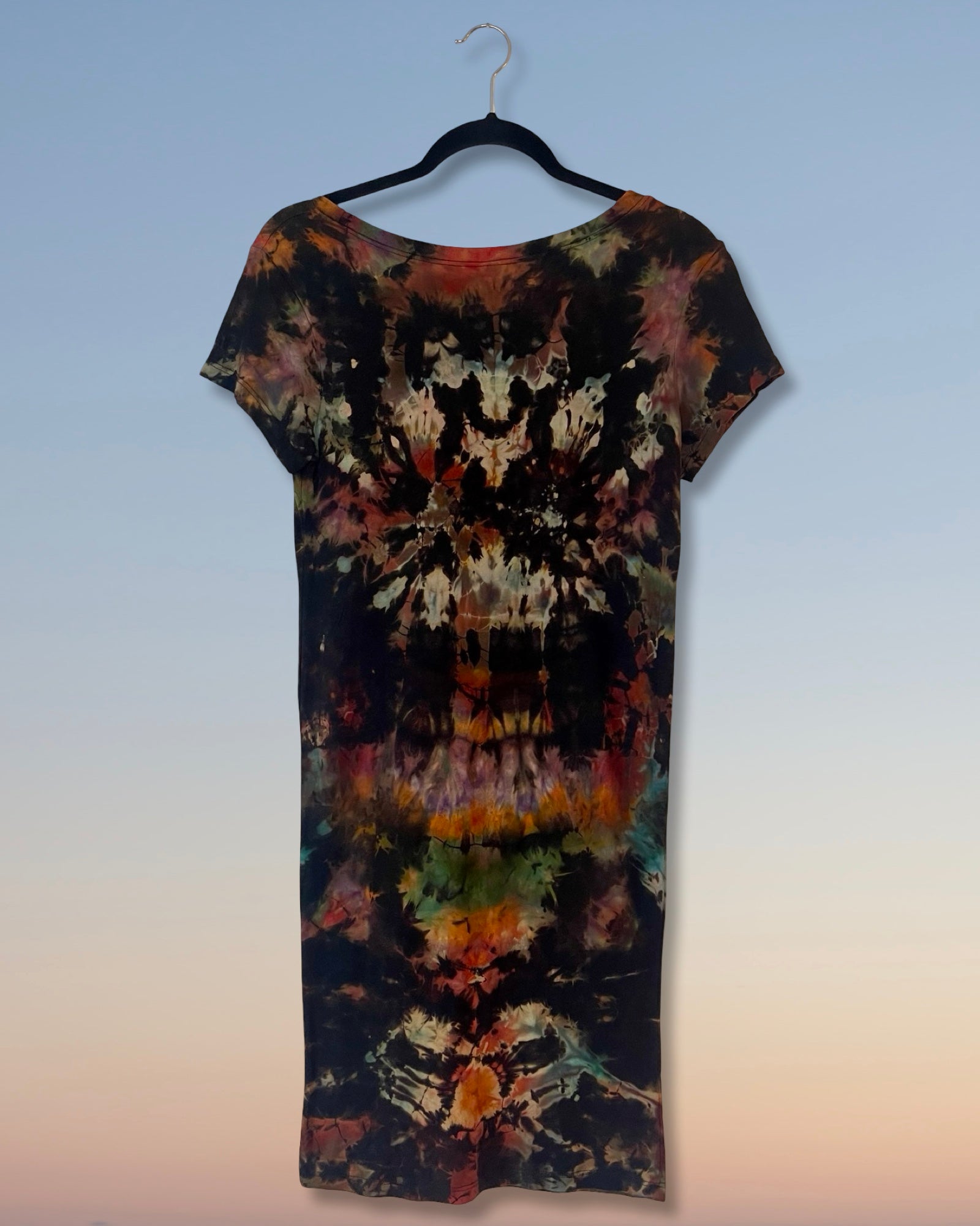 Reverse Dyed Bamboo Organic Tee Dress - Rainbow Scrunch- S