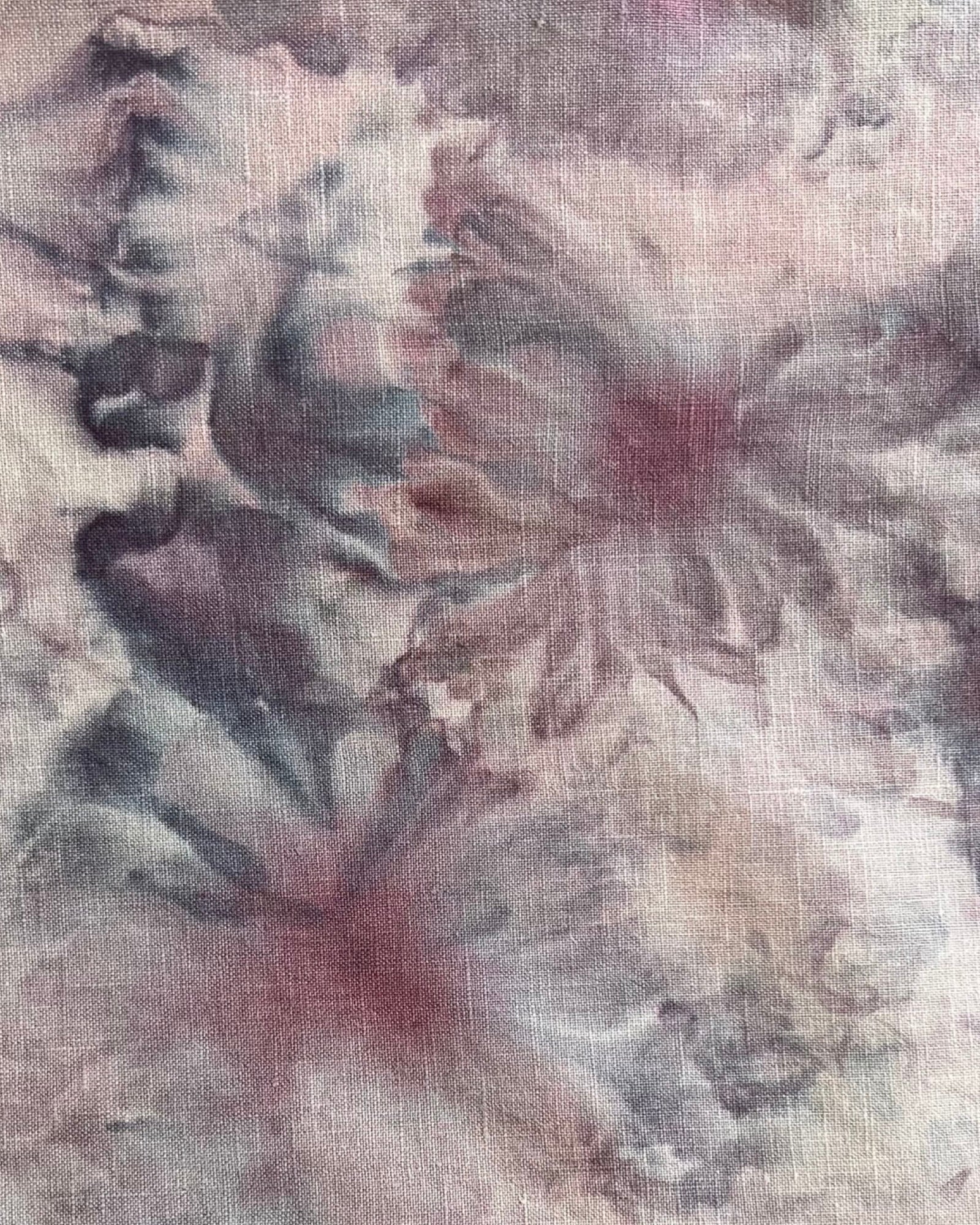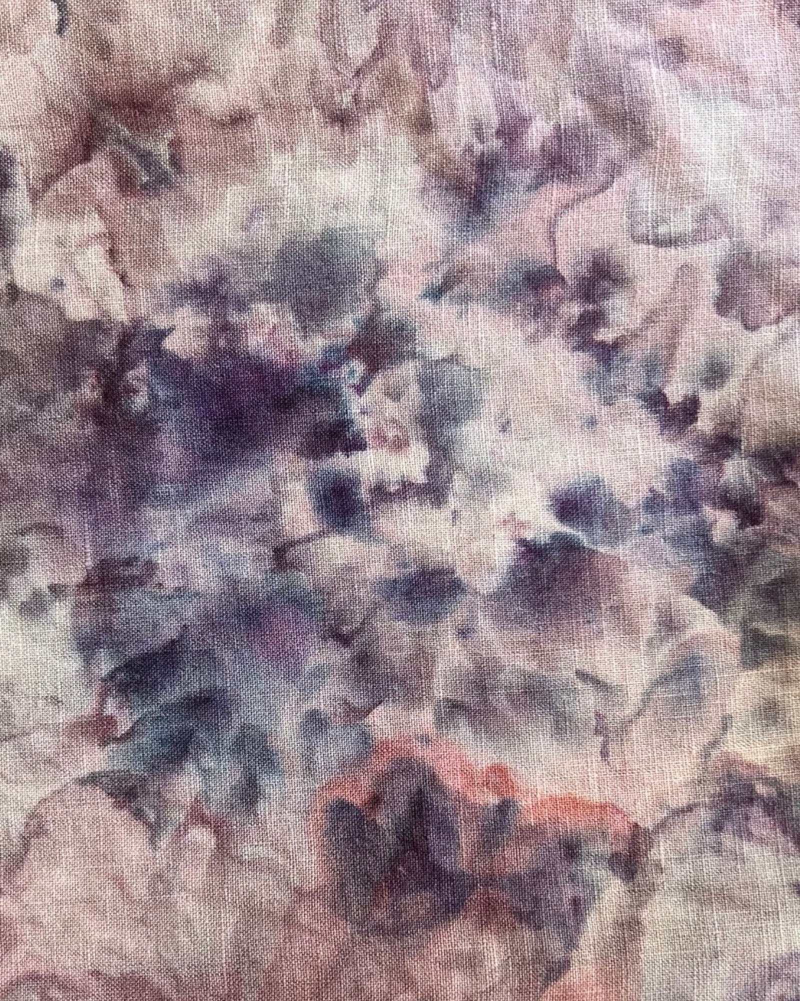 This medium size one of a kind up-cycled linen button down aloha shirt is ice dyed using a beautiful gravity technique that creates an abstract floral pattern. Rusty pinks and dusty purples mix adorn this shirt with a watery floral pattern perfect for your next tropical excursion or just one more Saturday night.